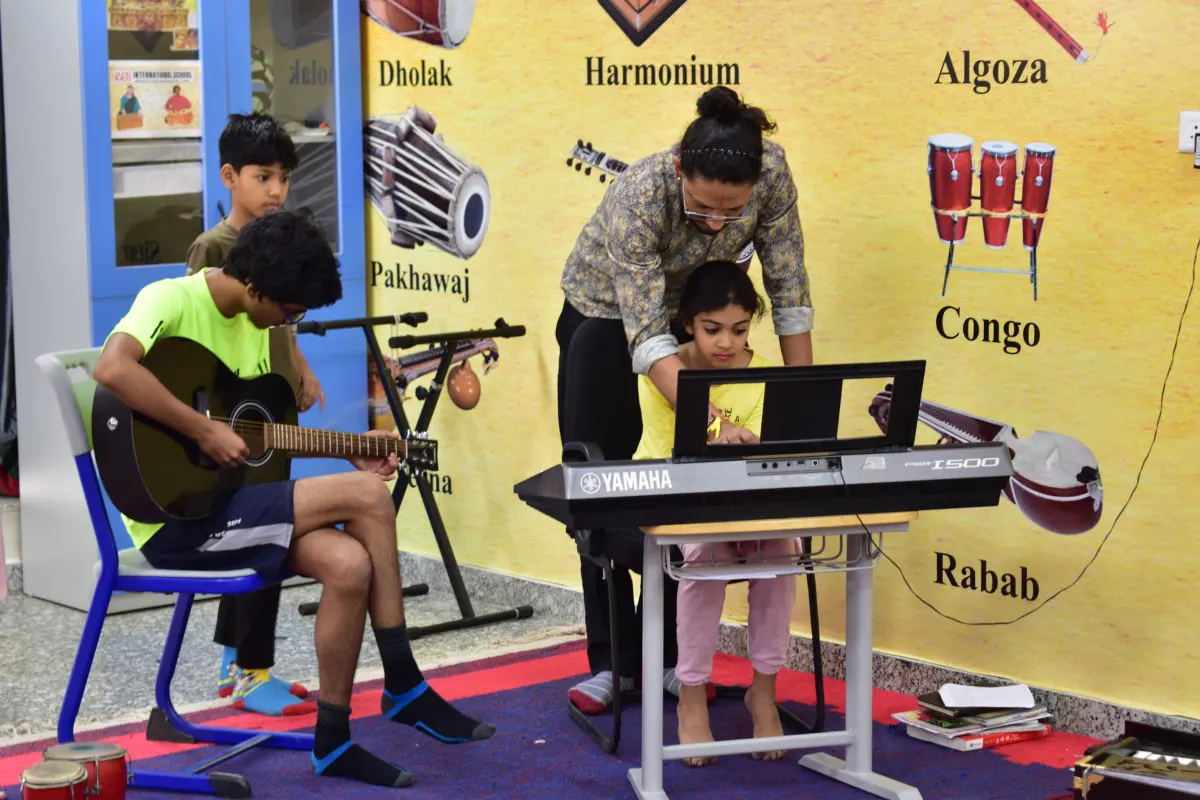 Music at VSI International School is a celebration of the wide range of musical instruments and styles found in the Indian culture. Children are exposed to the finer nuances and subtleties of a variety of musical sounds and rhythms. Each child is encouraged to sing, play and participate in a range of music related activities to discover the “magic of music” and the “musicians” within themselves. Fine arts include drawing, painting, sketching, calligraphy, clay modelling and sculpture. Students are encouraged to experiment with a variety of media. Designated activity areas provide space for children to utilize the available facilities several times during the week.
